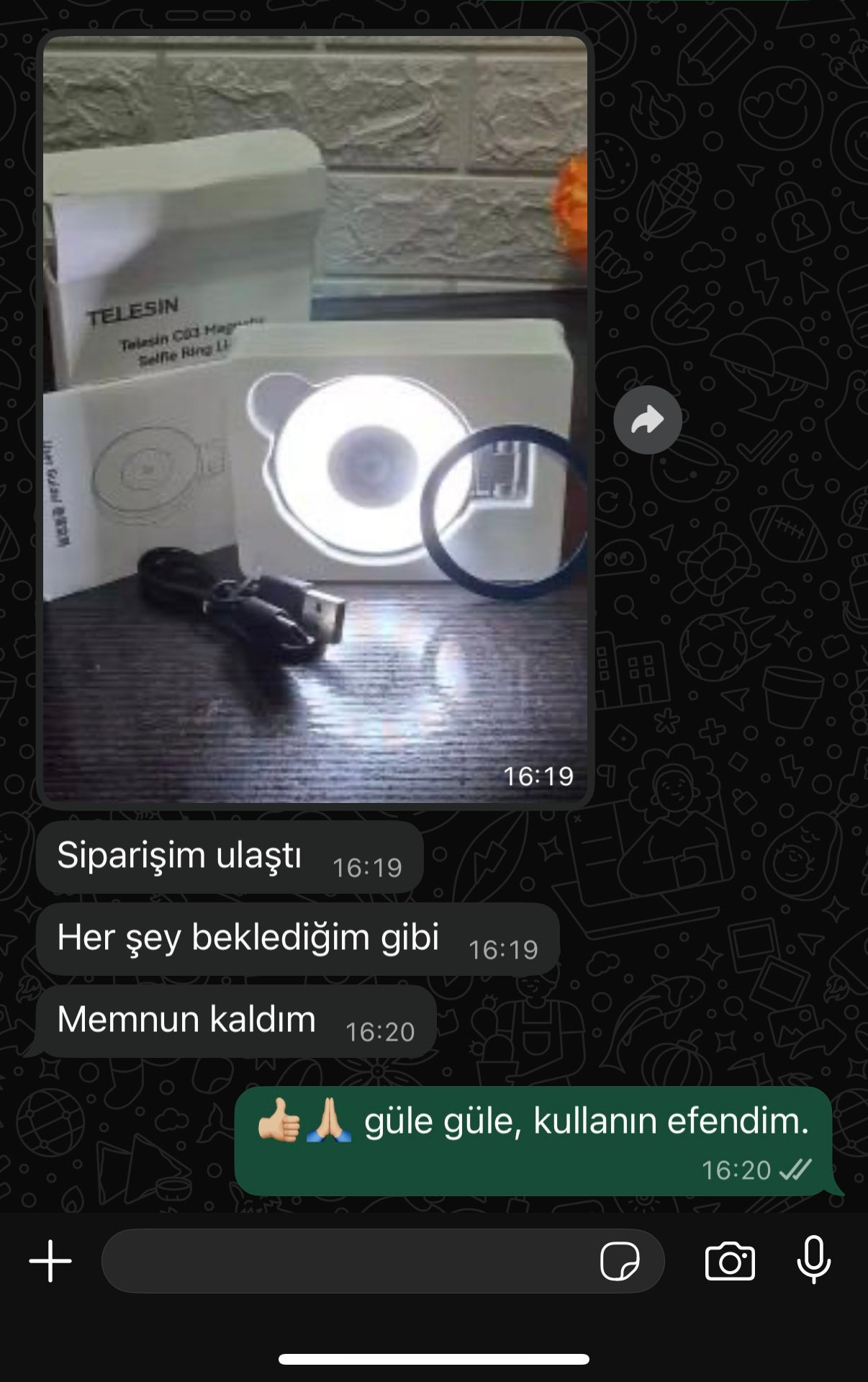 Siparişler aynı gün kargoya verilir.